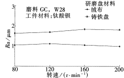 b)磨料粒度圖2研磨工藝參數(shù)與表面粗糙度的關(guān)系