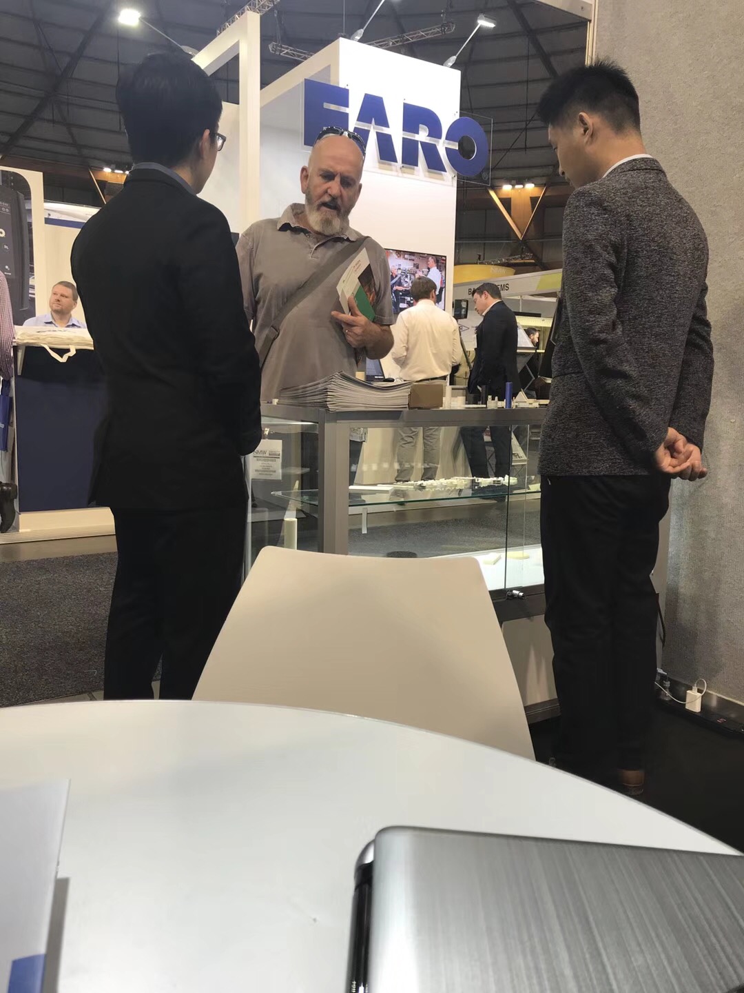 工作人員正在與外國客戶進行洽談